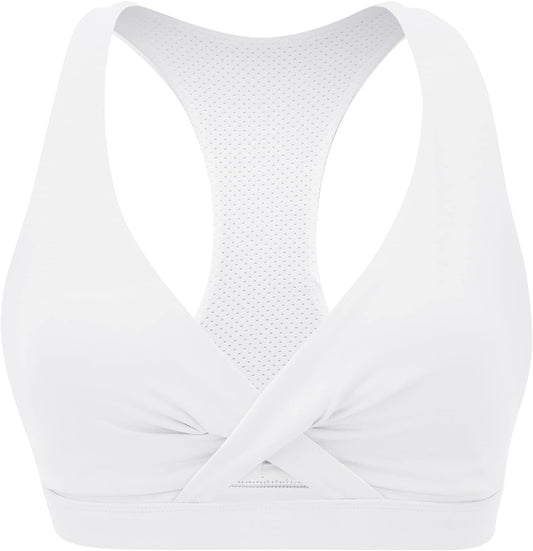 Women'S Ruched Sports Bra - Womens Strappy Sports Bra Mesh Open Back Sports Bra for Workout Yoga Gym (Medium, White)